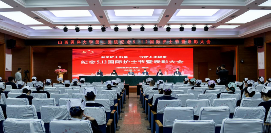 在第111个5·12国际护士节来临之际,为激励山西医科大学第二医院护理人继续传承南丁格尔精神,弘扬抗疫精神,全面提升护理服务能力,促进护理工作高质高效发展,山西医科大学第二医院纪念5·12国际护士节暨表彰大会于5月12日下午在影像楼六层大学术厅举行。山西医科大学第二医院党委书记李保,党委副书记、院长赵斌,党委副书记张秀卿,纪委书记王瑛,副院长张进、原大江出席会议。护理部主任郭锦丽做获奖表态发言,护理部副主任张颖惠主持会议。会议严格遵守疫情防控要求,50名获奖代表线下参会,线上同步直播,共有3700余人观看。