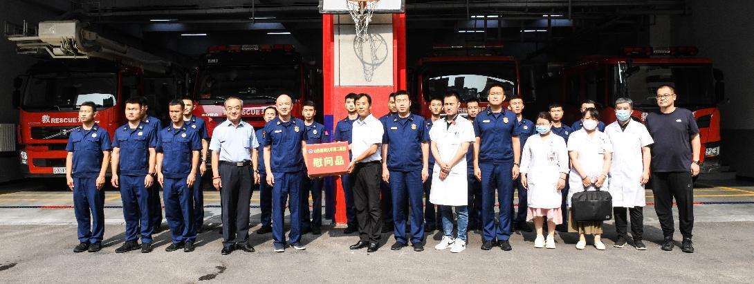 李少刚向消防队员致以节日的问候和崇高的敬意,并代表医院向消防队员们赠送了防暑常用药品。