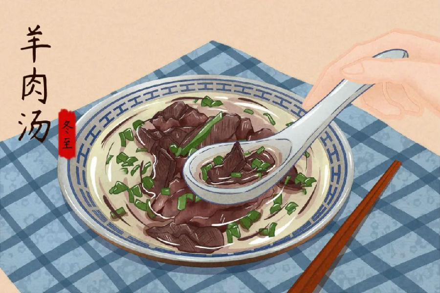 推荐食疗方:当归生姜羊肉汤 俗话说,冬天进补,来年打虎。人体应该顺应自然界的发展规律,进入冬季到了养精蓄锐的时期,要为来年去适应春季储备一定的能量。此外,寒冷是冬至节气的最主要特征,因此,养生也需要有针对性地进行。 说到冬季进补,下面要提到一道中医专家推荐的药食两用名方:当归生姜羊肉汤。这道药膳最早记载在《金匮要略》中。当归生姜羊肉汤主治血虚有寒,寒疝腹痛,胁痛里急;产后少腹疼痛,痛及腰胁,喜温喜按,舌淡苔白,脉虚大或沉弦而涩。 食材 当归9克、生姜15克、羊肉100克。(可以根据个人情况,酌情增减用量。) 方法 1.先将羊肉洗净、切块,用水焯烫、沥干水。2.把当归和生姜用清水洗净,生姜切片。3.把当归、生姜、羊肉一同放入砂锅内,用武火煮沸后撇去浮沫,再改小火炖至羊肉软烂,加盐等调味品即可食用。 功效 温中补血,祛寒止痛。