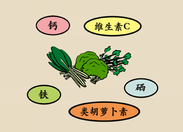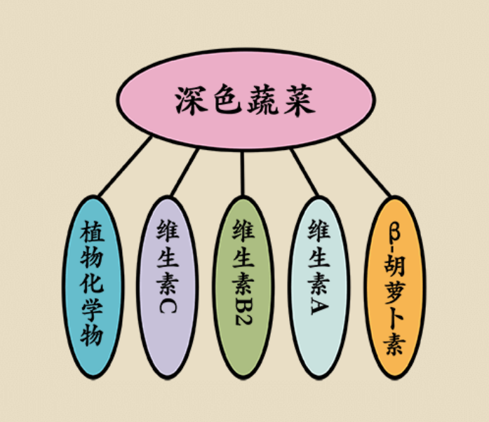 深色蔬菜更有营养优势,富含β-胡萝卜素和维生素 A,维生素 B2和维生素C含量均相对较高,还富含“植物化学物”。